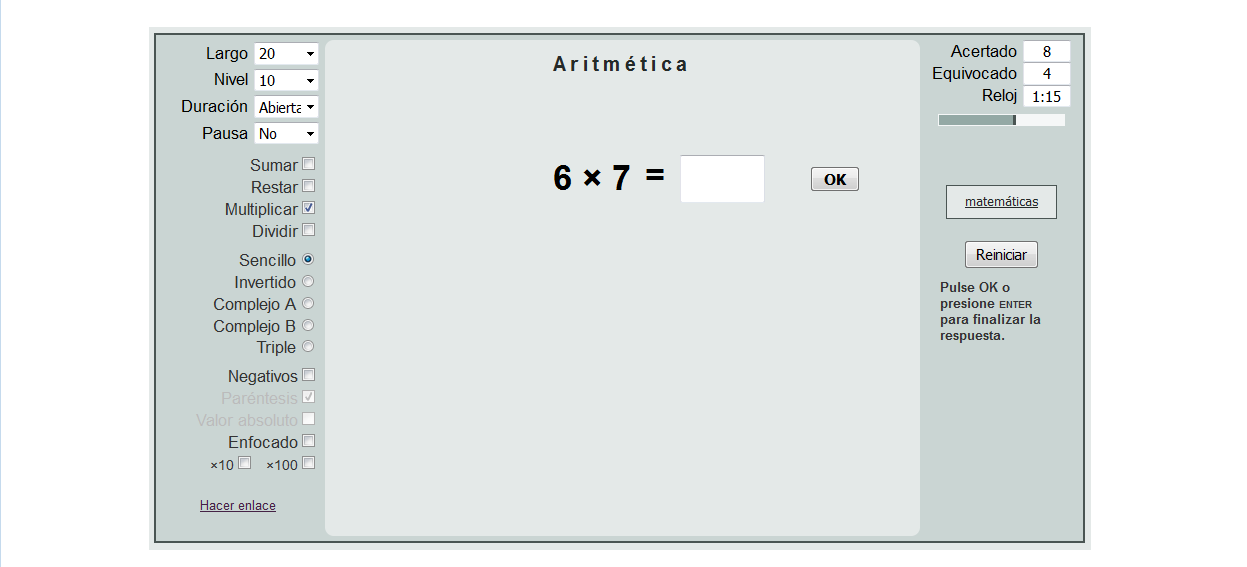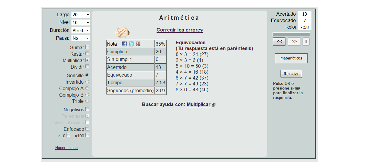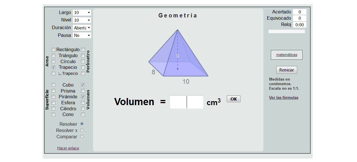Este recurso educativo permite que el alumno pueda autoevaluarse y estar mejor preparado para una evaluación, dentro de esta página se consideran todas las áreas de las matemáticas, desde la aritmética, algebra, geometría y trigonometría, el alumno o el docente propone el nivel de dificultad y la duración del mismo.