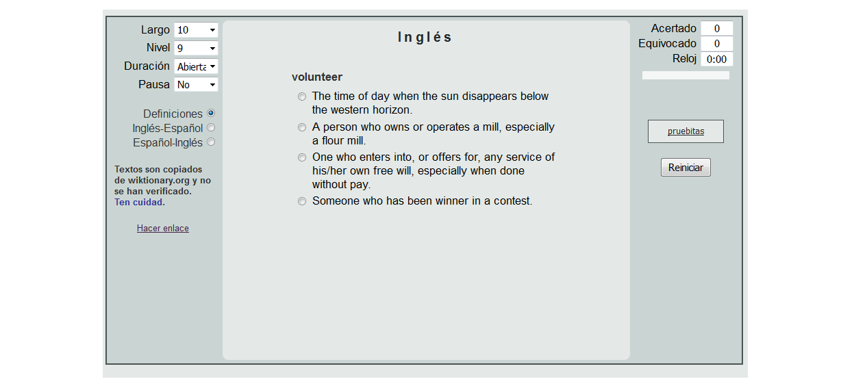 Una de las pocas páginas en nuestro idioma (disponible en 10 idiomas) que abarca las áreas de las matemáticas, Ciencias e Idiomas, el nivel de complejidad va desde 1 donde los ejercicios son muy básicos y pueden llegar hasta 50 dependiendo el ejercicio, donde el alumno se motiva a resolver ejercicios más difíciles. El docente puede tener un control del avance de sus alumnos, para ello se registra como docente y puede agregar a sus alumnos para que las evaluaciones les lleguen a sus correos a través de un link que les pedirá una clave en el caso que se haya configurado una, para que sea resuelta por los alumnos en línea.